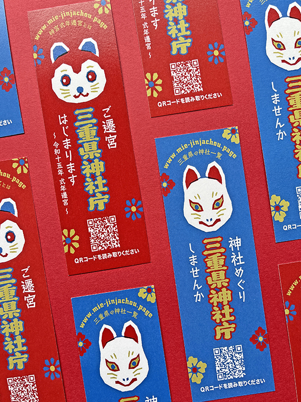 三重県神社庁様 Webサイト宣伝用ポスター、配布用栞。 https://www.mie-jinjachou.page/神宮式年遷宮とは https://www.mie-jinjachou.page/三重県の神社一覧 |